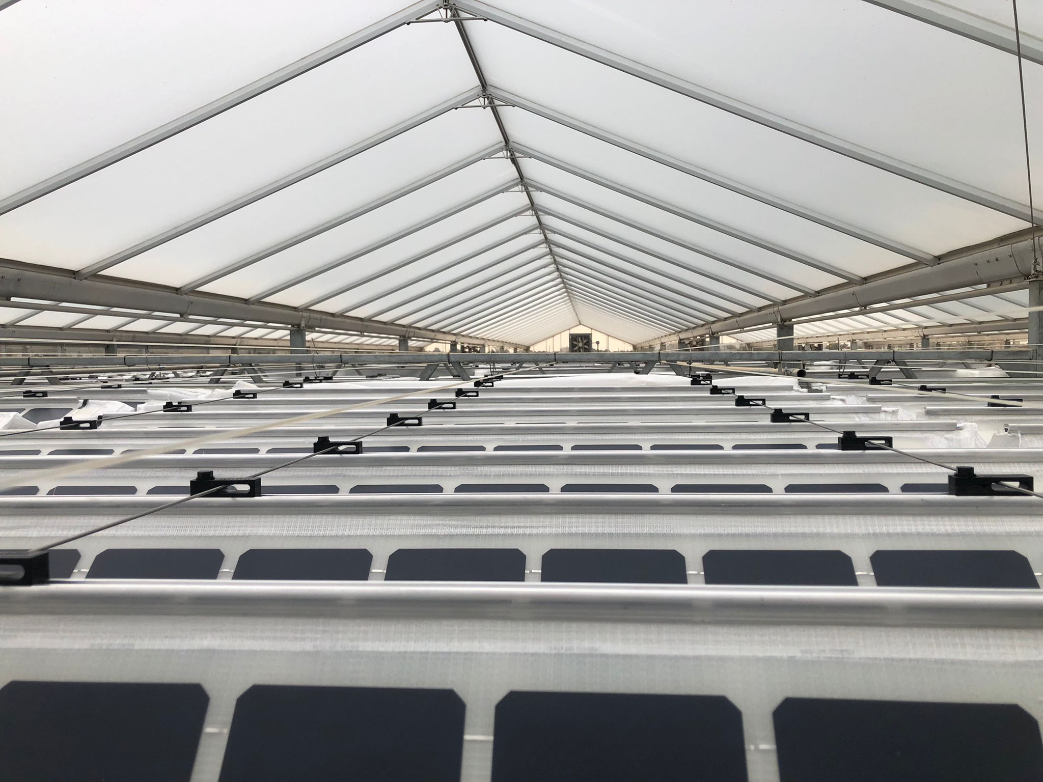 Our solar shades are a drop-in replacement for existing shade systems or an external installation. Allows for optimal light management, improved crop yields and energy independence.